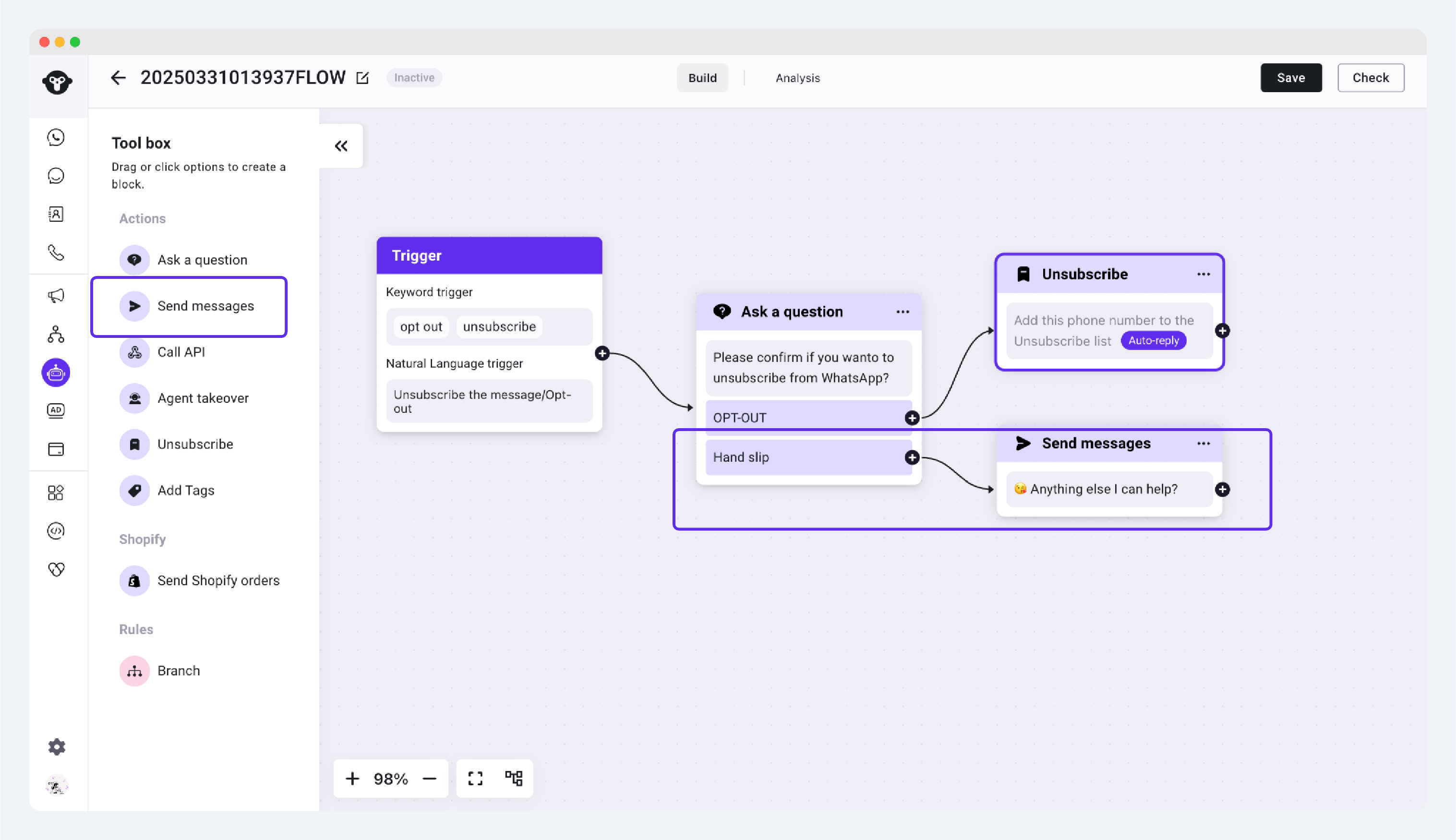 Step 1: Log in to your YCloud account and create a Chatbot Flow