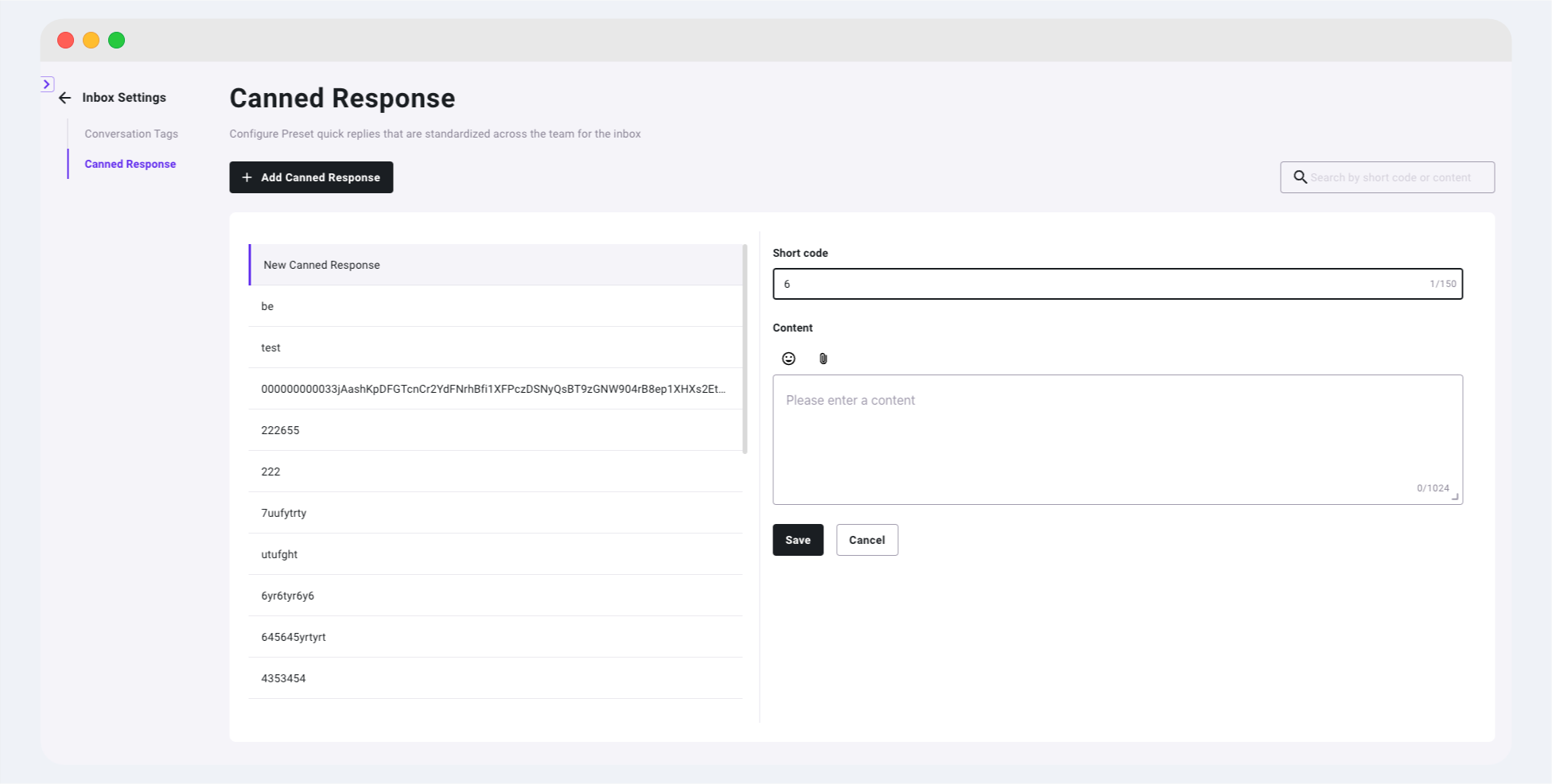 Click the button and a new canned response will be created, and you need to fill in the content as shown.
