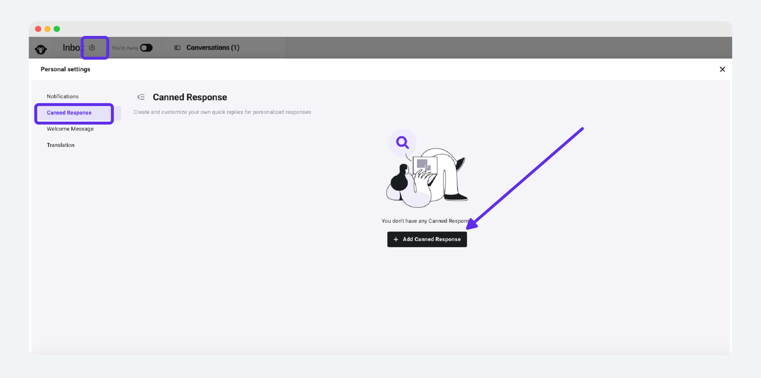 Click into the Inbox Settings menu in Inbox, and choose the canned response sub-menu.&#x20;