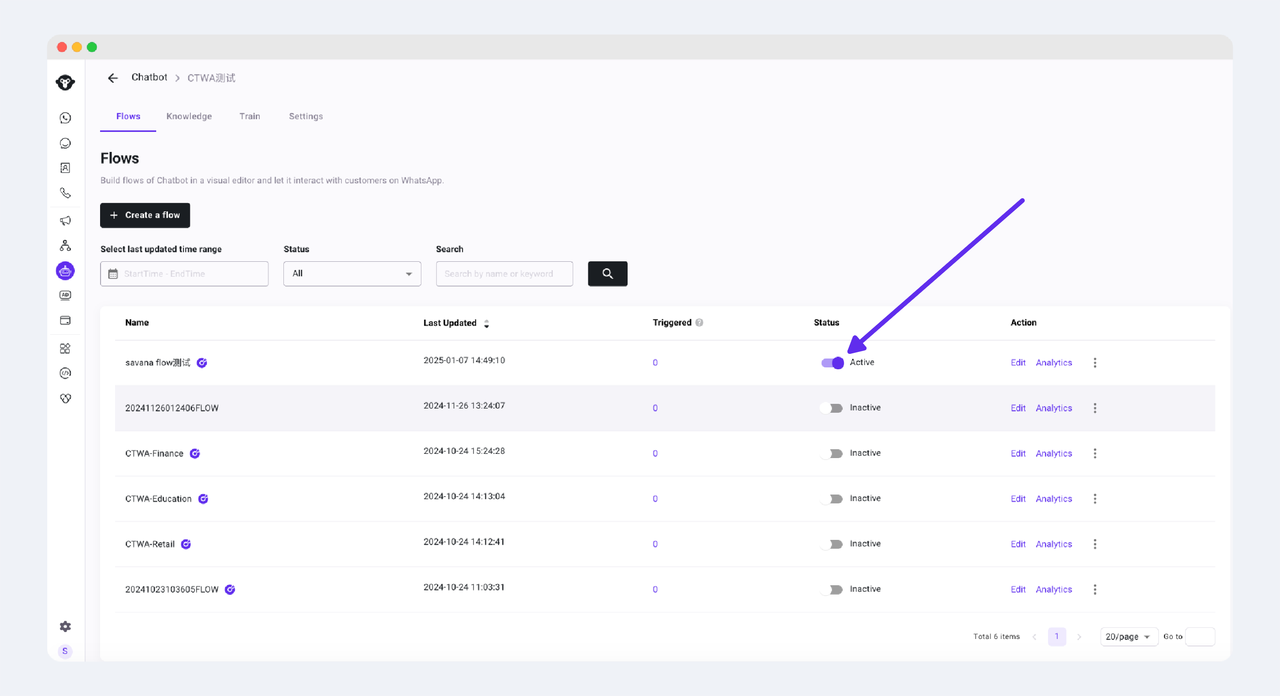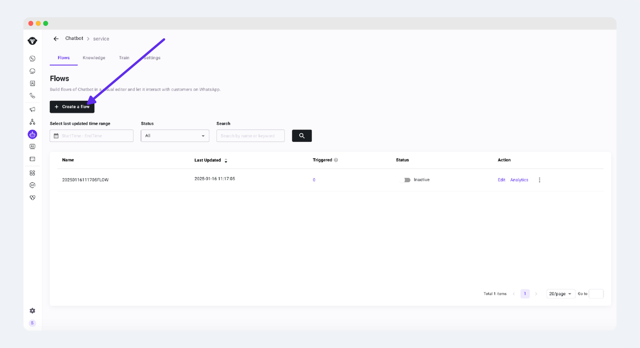 Click to view [Create a Flow](https://helpdocs.ycloud.com/help-center/chatbot/chuang-jian-yi-ge-flow)