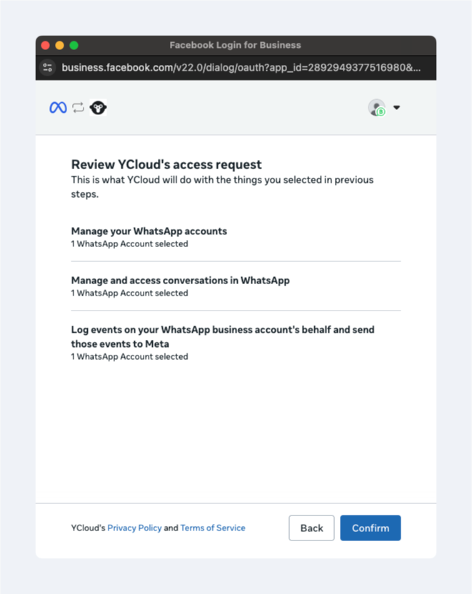 In this case, choose WhatsApp Business App Number, then authorize your account according to the instructions in the pop-up window.