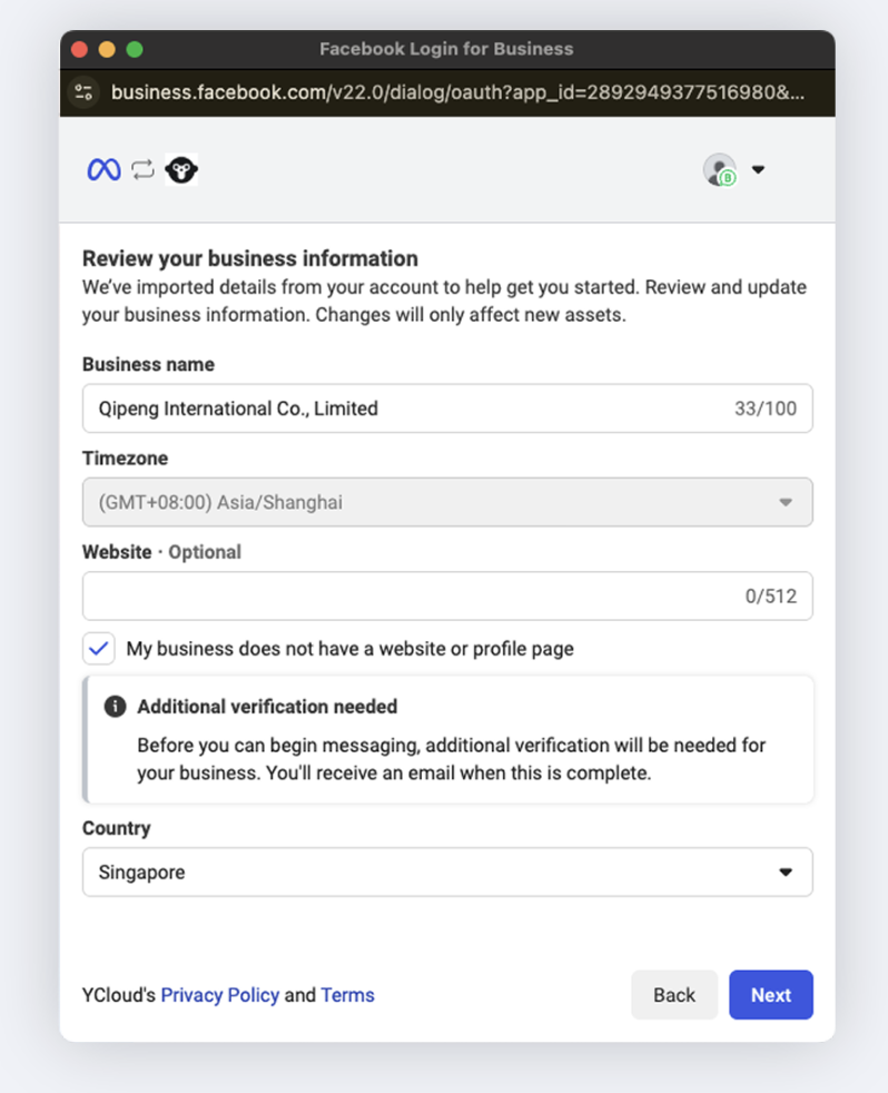 The business name must be filled in with the name on the registration document, otherwise, it will affect the business verification in future.