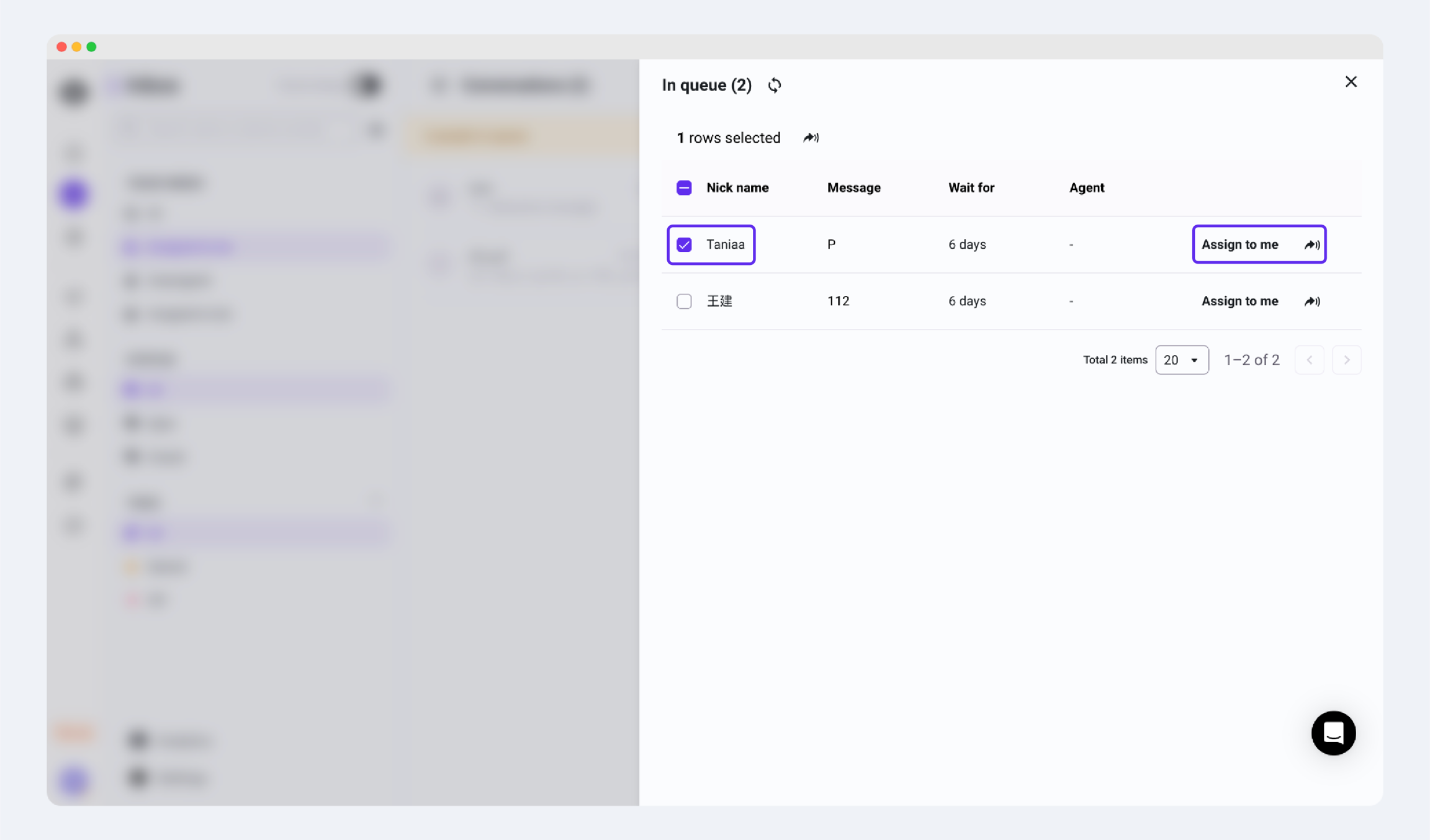 When the reception limit is reached, the number of people currently in the queue will be displayed at the top of the staff member's Inbox interface. Click on **people in queue**, select the conversation you want to transfer to yourself, and the transfer will be successful.