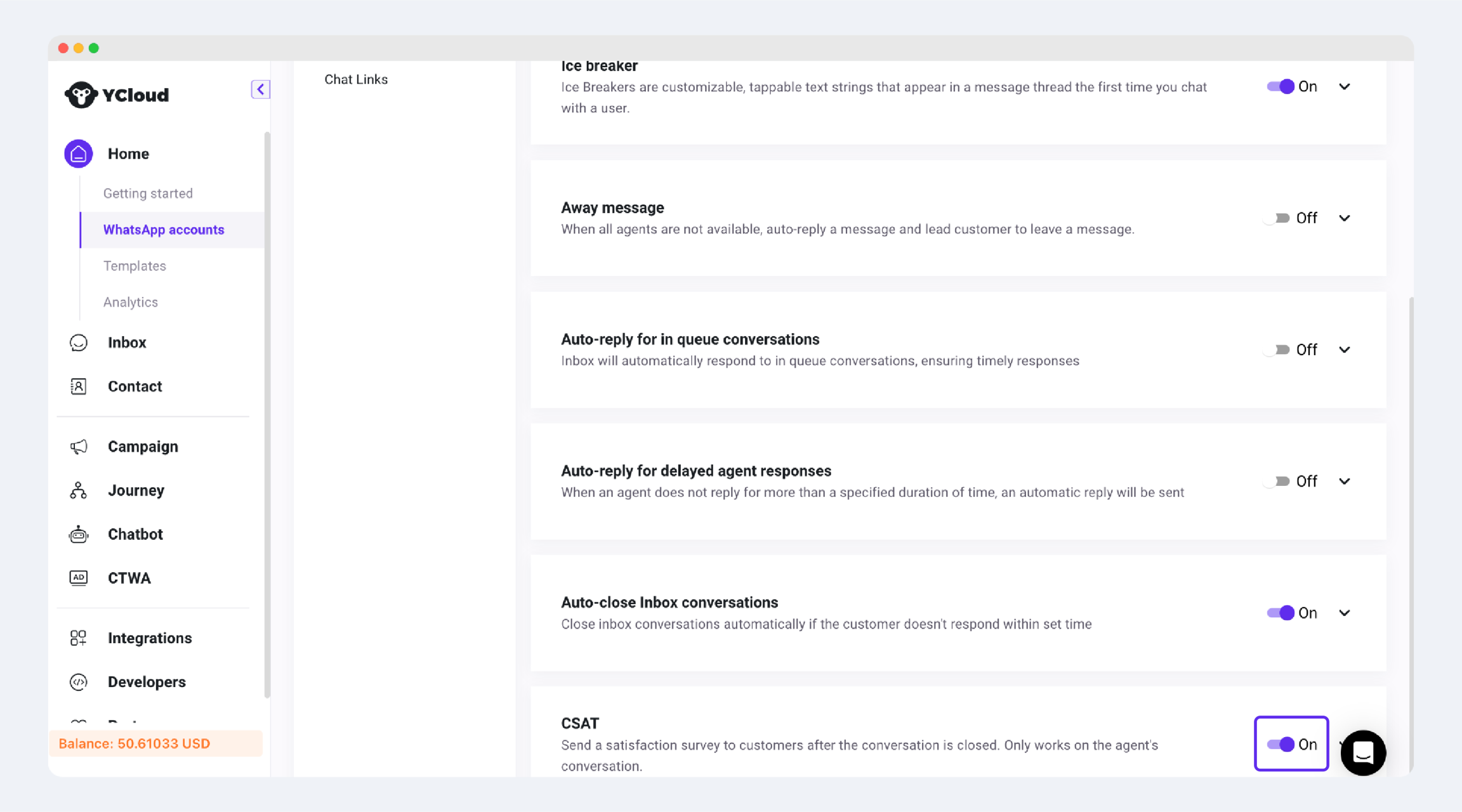 * [CSAT](https://helpdocs.ycloud.com/help-center/whatsapp-accounts-zhang-hao-guan-li/shou-ji-hao-ma-guan-li/zi-dong-hua#csat-customer-satisfaction)