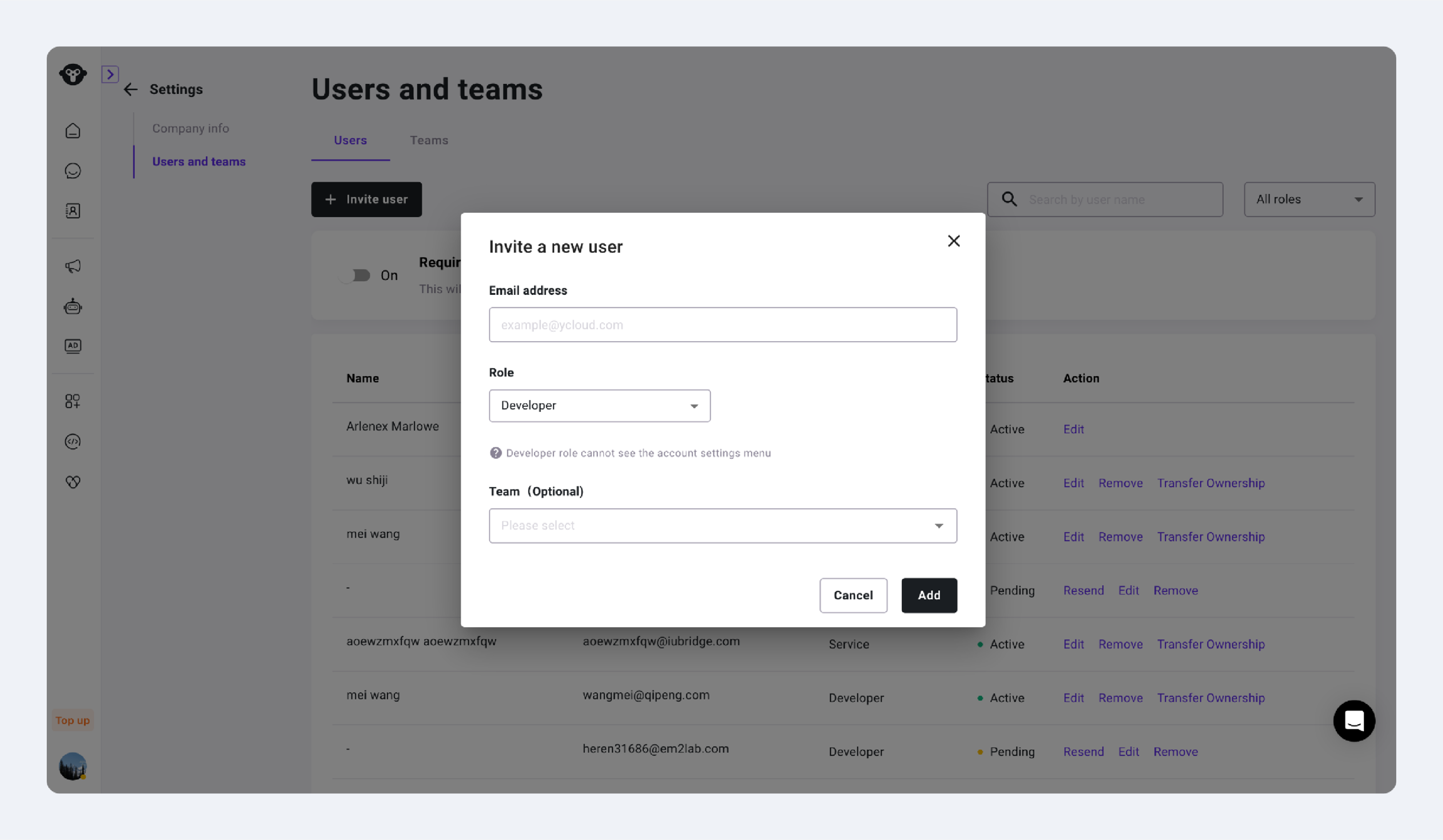 请注意,受邀请的用户无需通过YCloud官网新注册账号。